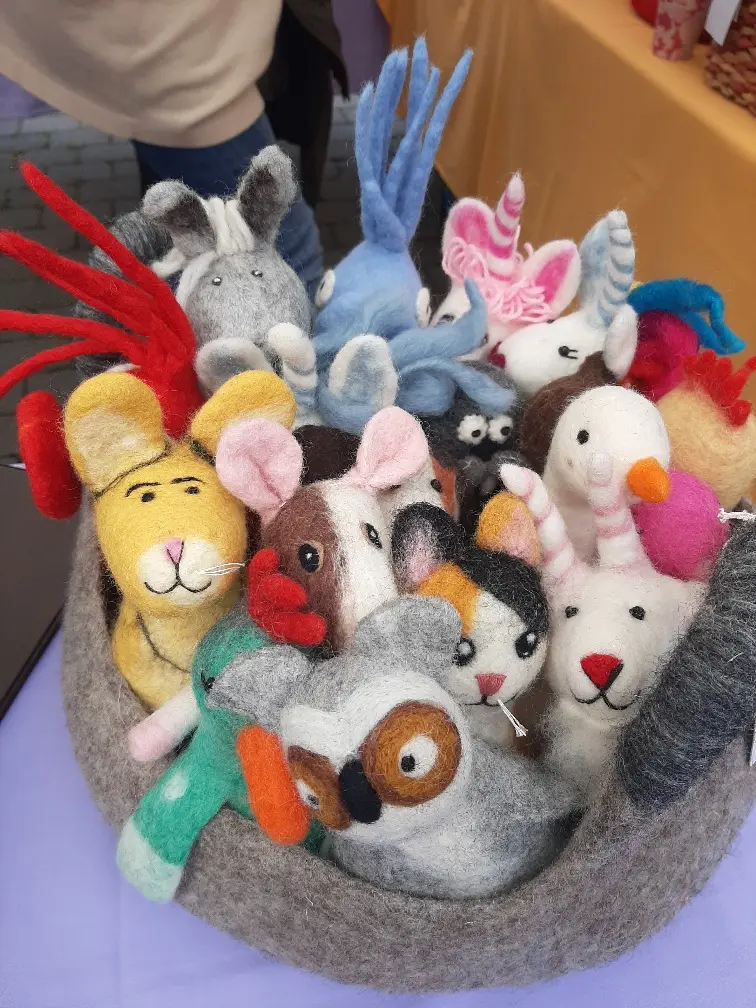 Bei besonderen Festen in Dreieichenhain verkauft die Eine-Welt-Gruppe die fair gehandelten Waren. Beim diesjährigen Töpfermarkt am 29. September gab es neben Schokolade, Honig, Tee und weiteren Lebensmitteln auch eine Vielfalt an Einkaufskörben, Untersetzern, Kerzen, gefilzten Tierfiguren usw.